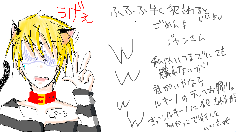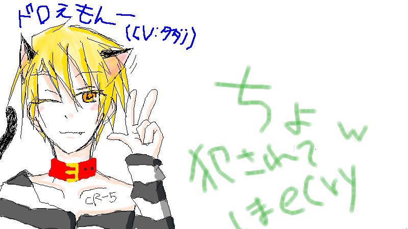 首輪の色を聞いたら「赤」と即答。描いてみたらド●えもんっぽいと思ってたら、まさかの「CR:5でド●えもん(深夜アニメ)」のキャストを書き出す。